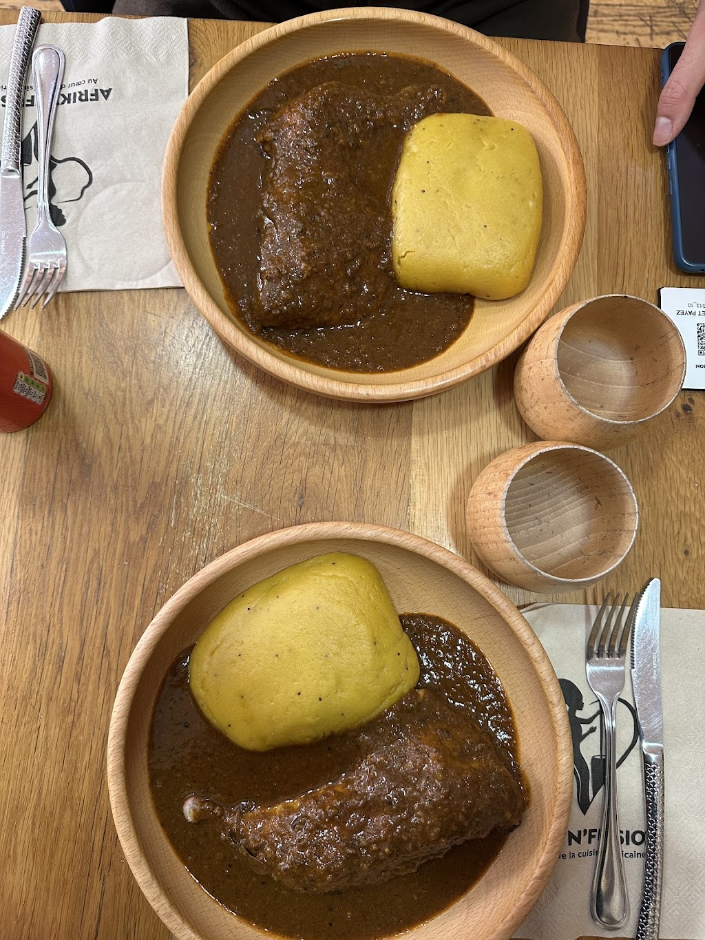 Afrik’N’Fusion Paris 13 cuisine africaine séduit par ses plats traditionnels généreux et savoureux, comme le fameux foutou sauce graine boeuf et les frites de patates douces. L’accueil chaleureux et le service professionnel créent une atmosphère conviviale où l’on se sent immédiatement à l’aise. Le décor soigné et l’ambiance tamisée renforcent cette expérience culinaire unique. La qualité des ingrédients frais et la présentation soignée des plats témoignent d’un excellent rapport qualité-prix. Une adresse à ne pas manquer pour découvrir la richesse de la gastronomie africaine dans un cadre élégant et propre.